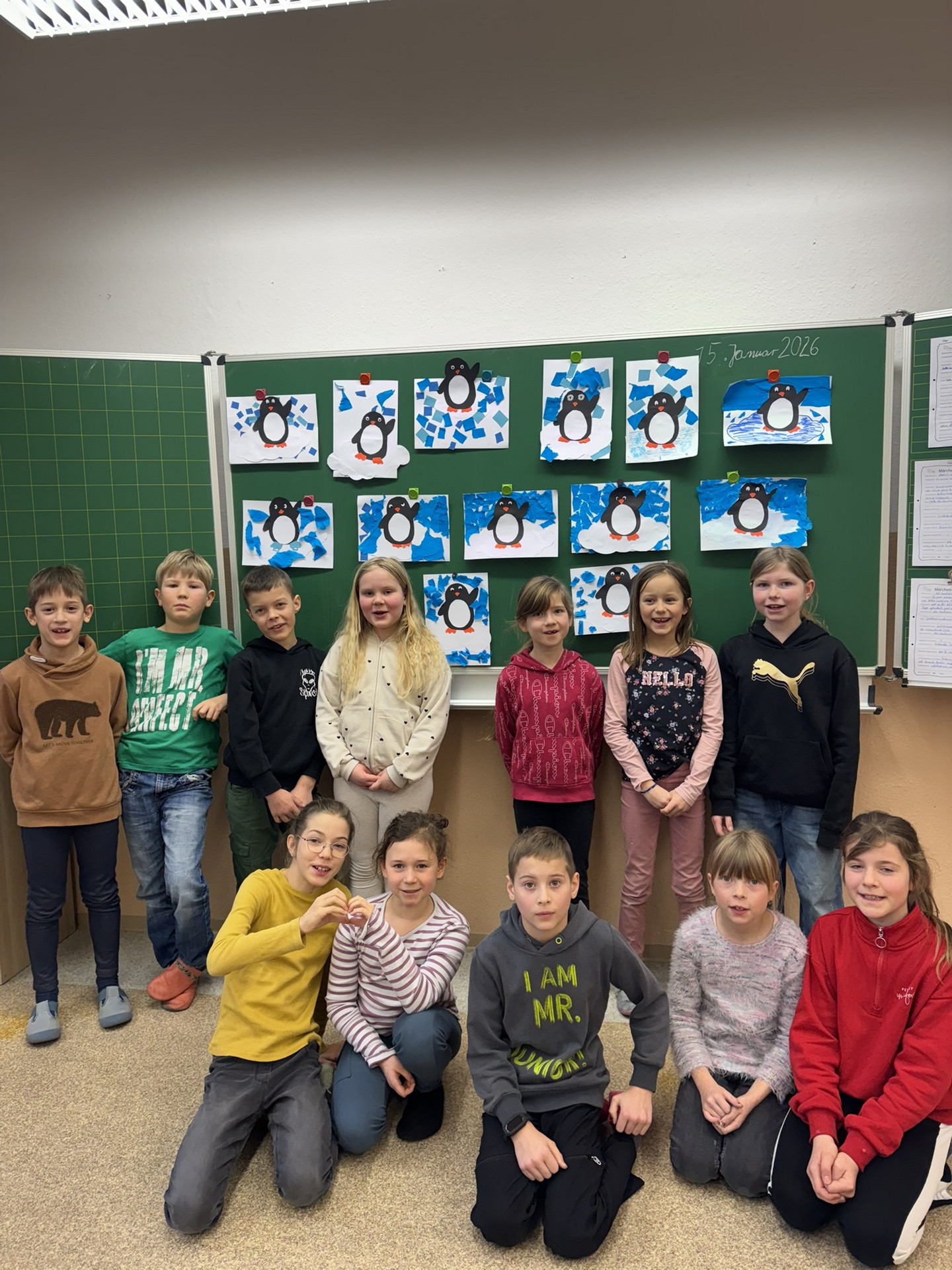 Die Klasse drei war in den letzten Tagen besonders kreativ aktiv. Mit viel Fantasie, Freude und Liebe zum Detail gestalteten die Kinder einen wunderschönen, winterlichen Pinguin.