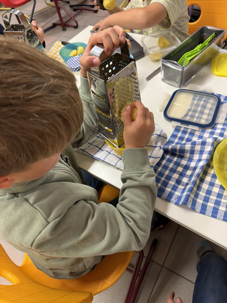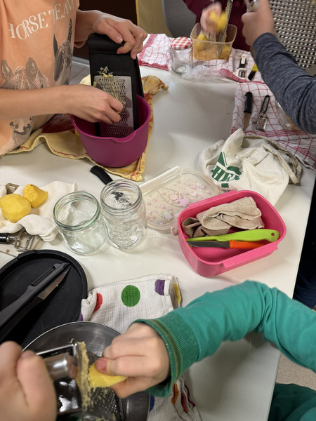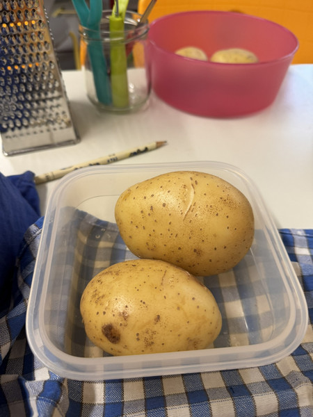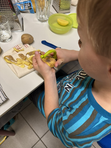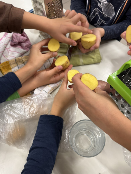 Die Klasse 3 hat sich in einem spannenden Kartoffelprojekt intensiv mit der Kartoffel beschäftigt. Schritt für Schritt erkundeten die Kinder alles rund um die Knolle: Sie wurde geschält, gerieben, gepresst und genau untersucht. Dabei konnten die Kinder nicht nur fühlen und riechen, sondern auch mit dem Kartoffelwasser experimentieren. Am Ende wurde das aufgefangene Wasser genau unter die Lupe genommen, um die Kartoffelstärke sichtbar zu machen. Mit viel Freude und Forschergeist hielten die Kinder ihre Entdeckungen im Protokoll fest – eine spannende Reise in die Welt der Kartoffel!
