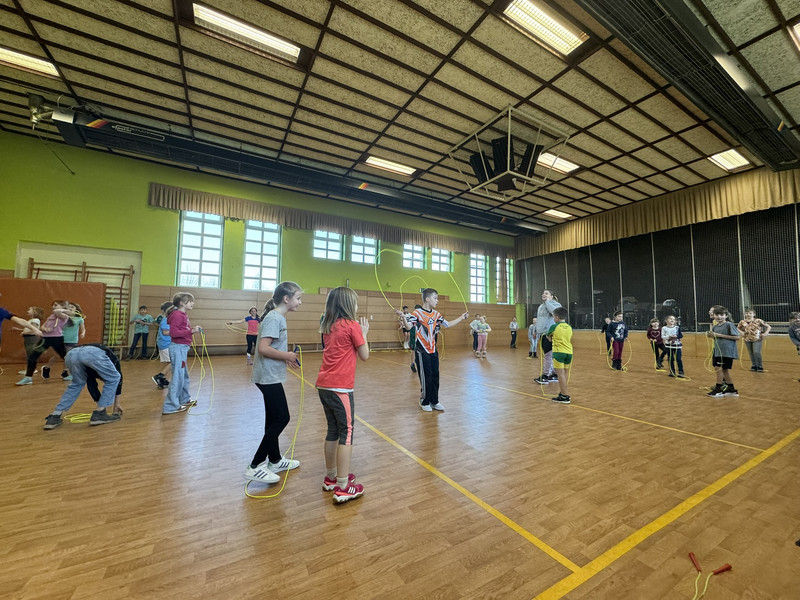 Am 27.11.2024 erlebte die Klasse 3 ein unvergessliches sportliches Abenteuer: Die Kinder nahmen begeistert am Programm von Skipping Hearts teil. Mit viel Energie und Freude erlernten sie in 90 Minuten beeindruckende Sprungtechniken und sportliche Elemente mit dem Springseil.