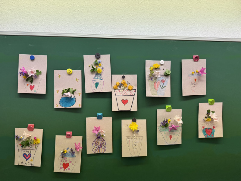 Mit viel Kreativität und Freude haben die Kinder individuelle Blumenvasen entworfen und gestaltet – jede ein echtes Unikat! Bei einem kleinen Frühlingsspaziergang wurden die liebevoll verzierten Vasen dann mit frischen Blumen gefüllt. So entstanden ganz besondere Blumengrüße, die von Herzen kommen – für unsere wunderbaren Papis.