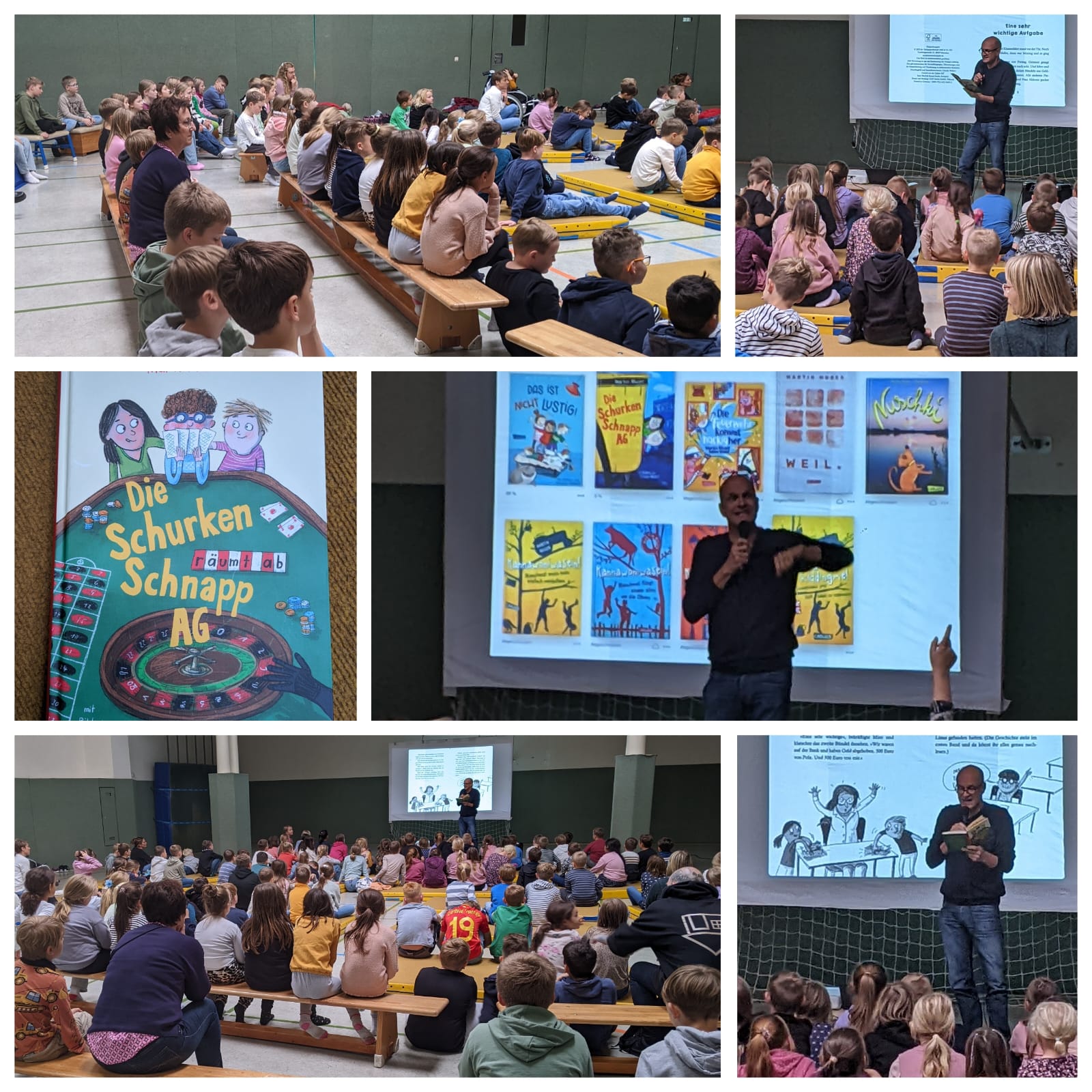 Am 28.10.2025 war der Autor Martin Muser bei unseren kleinen Bücherwürmern zu Gast und hat sein neues Buch "Die Schurken Schnapp AG räumt ab" vorgestellt. Mit einer Lesung und anschließender Fragerunde konnte Herr Muser unsere Kinder begeistern. Mit Neugier und Interesse beteiligten sich alle Schüler.