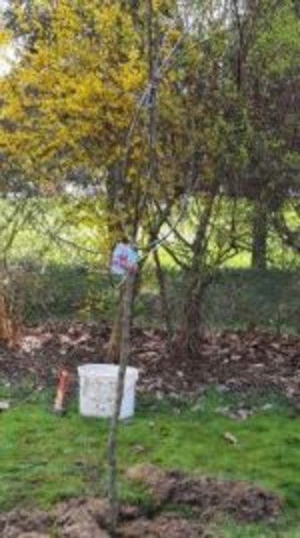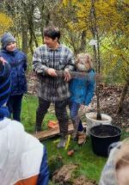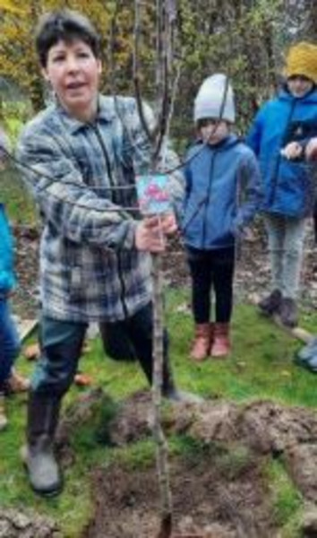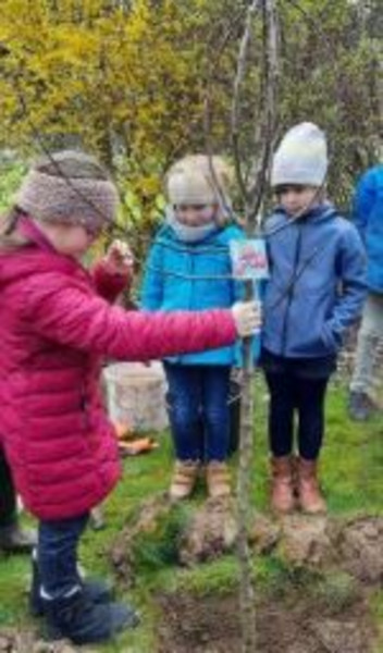 Initiative Apfelbäumchen - zwei wurden in unserem Schulgarten eingesetzt