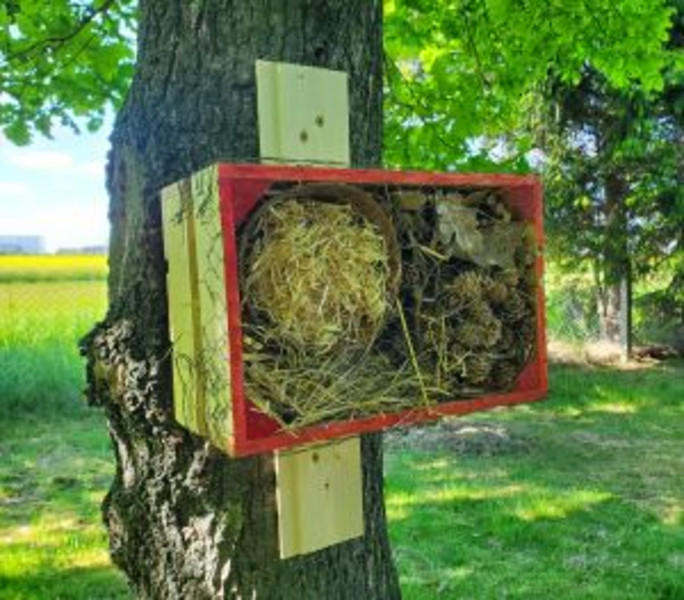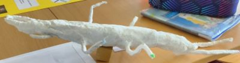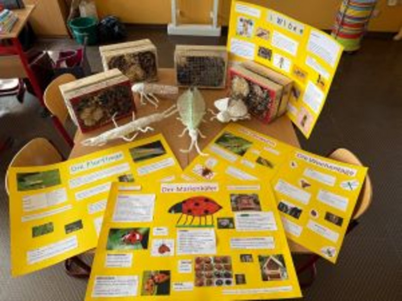 Unsere Referendarin Frau Schulz führte gemeinsam mit der Klassenlehrerin Frau Jacob ein Projekt zum Thema "Bildung für nachhaltige Entwicklung" durch. Dabei bauten die Kinder in Gruppen kleine Insektenhotels und sogar Insektenmodelle aus Gipsbinden. Die Insektenhotels sind nun in der Freizeitoase angebracht. Die Insektenmodelle werden sicher auch noch einen würdigen Platz finden.