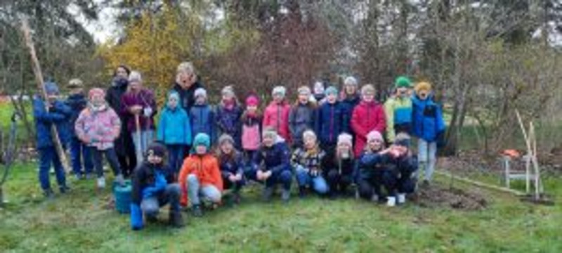Nachdem ein passender Platz im Schulgarten gefunden wurde, haben die Schulgartenkinder des GTA's sowie die Schülerinnen und Schüler der Klasse 3a unter Anleitung von Frau Gräulich die zwei Bäumchen gepflanzt. Leider konnte ich nicht selbst dabei sein, wurde aber von meiner Klassenlehrerin darüber informiert, dass es allen viel Spaß gemacht hat, Frau Gräulich zu helfen.