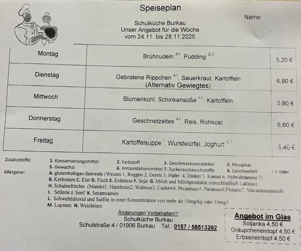 Ab Januar 2025 beträgt der Essenspreis 3,60 Euro