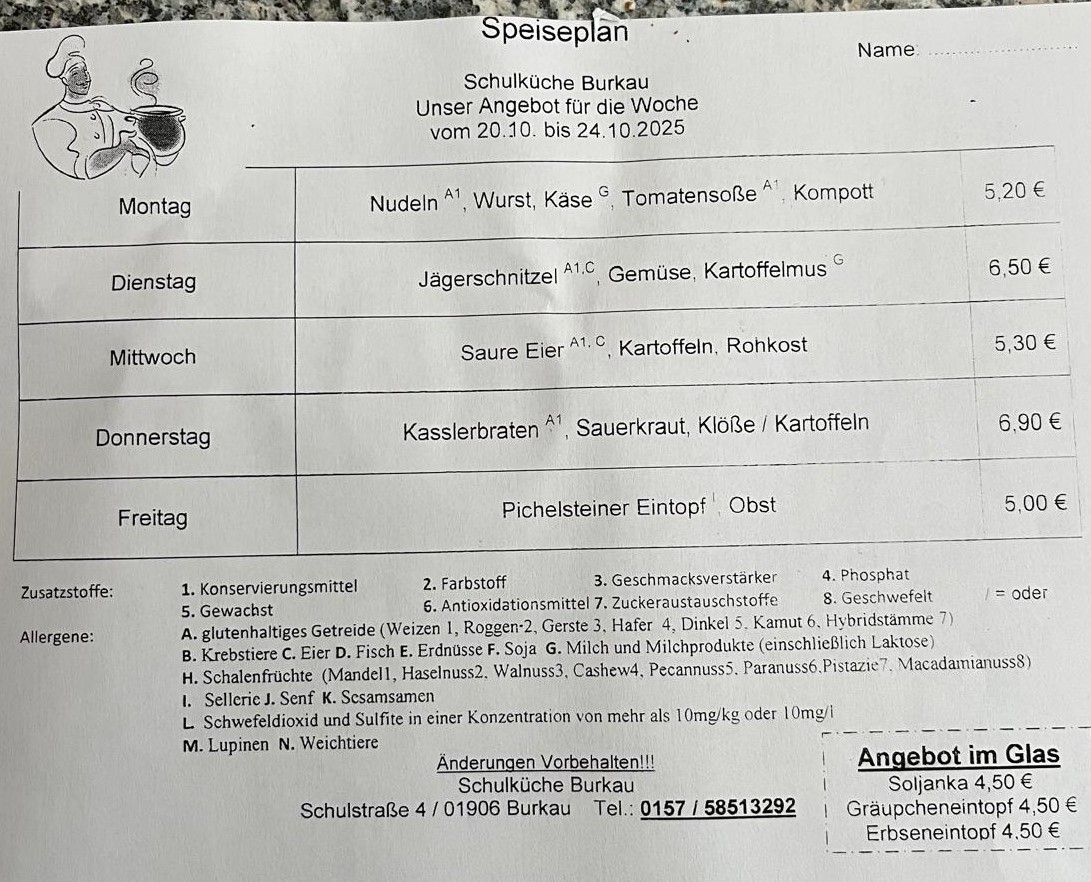 Speiseplan 20.10.25-24.10.2025