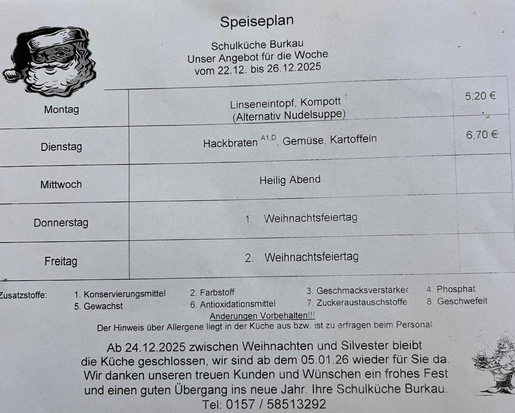 Speiseplan 22.12.25-26.12.2025