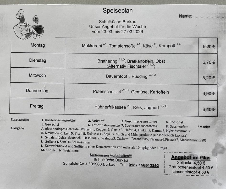 Ab Januar 2025 beträgt der Essenspreis 3,60 Euro