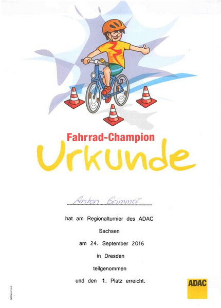 Wir gratulieren ganz herzlich Anton Grimmer, welcher am 24.09.2016 im Regionalturnier des ADAC einen hervorragenden 1. Platz belegte!