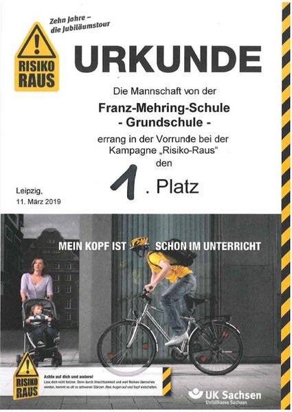Am 11. März 2019 nahm unsere Schule an der "Risiko Raus-Tour 2019" teil und belegte den 1. Platz in der Vorrunde.