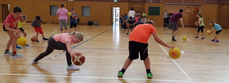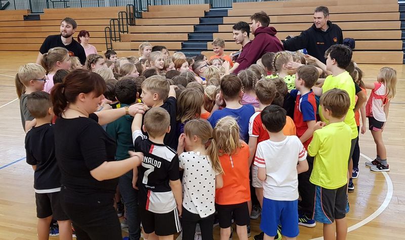 Pünktlich 7.15 Uhr trafen sich alle Klassen an der Schule. Gemeinsam wollten wir einen tollen Sporttag erleben. Wir fuhren mit der Citybahn nach Chemnitz und liefen in die Schlossteichhalle. Dort begrüßten uns drei Niners-Trainer.