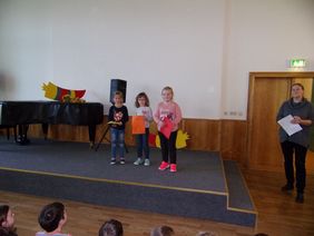 Die besten AltpapiersammlerInnen vom September wurden in der Aula ausgezeichnet und erhielten kleine Überraschungen.