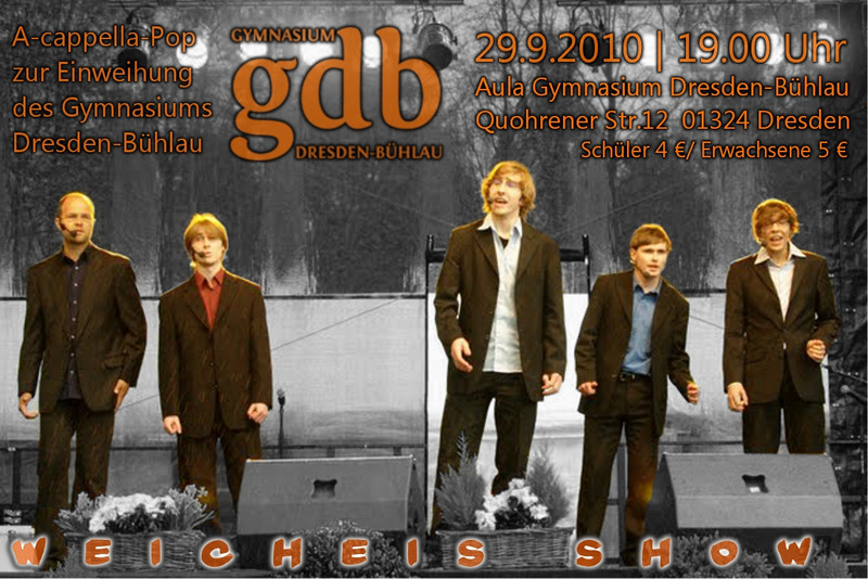 Anläßlich der Einweihung des Gymnasium Dresden-Bühlau findet am 29.9.10 ab 19.00 die "WEICHEIS Show" statt.