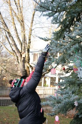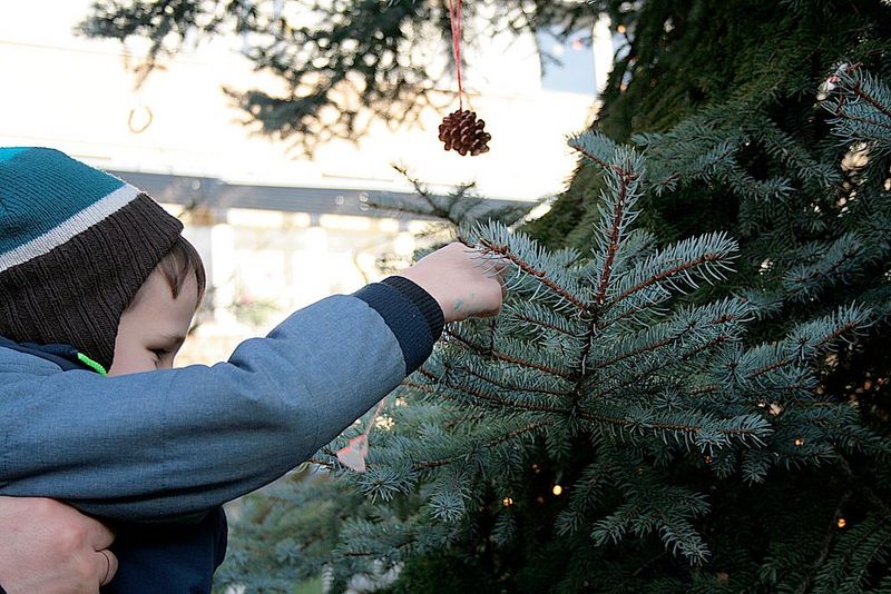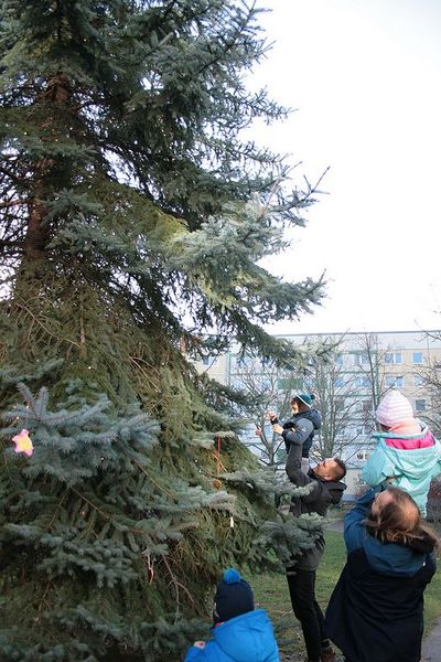 Damit wir uns nicht nur der Lichter in der dunklen Jahreszeit erfreuen können, haben unsere Schüler und Schülerinnen fleißig Tannenbaumschmuck gebastelt. Neben Figuren aus Salzteig hängen nun bunt bemalte, perlenbesetzte, hölzerne, bunt strahlende Anhänger an unserem großen Baum. Bei Musik und gegenseitigem Hochheben haben wir uns mit viel Freude in Vorweihnachtsstimmung gebracht.
