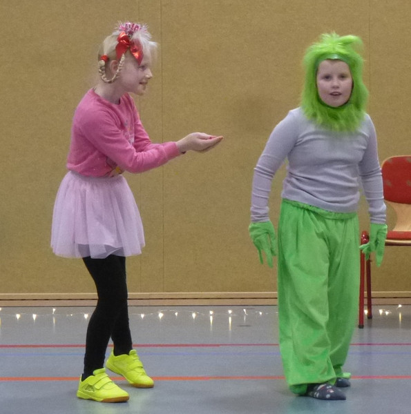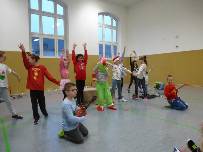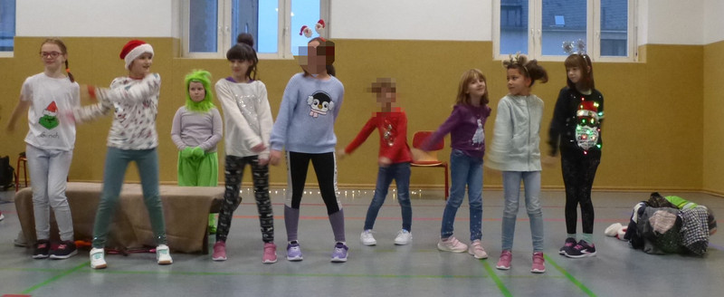 Auch in diesem Jahr hatten wir wieder eine schöne gemeinsame Adventszeit. Beim gemütlichen Weihnachtsfrühstück, dem Singen und Musizieren oder beim Basteln von kleinen Weihnachtsgeschenken stimmten wir uns auf das nahende Weihnachtsfest ein und auch unsere zwei kleinen Weihnachtswichtel zogen doch tatsächlich wieder im Klassenzimmer ein und versüßten uns die Zeit mit ihrem Zauber und lustigen Streichen. Zum Abschluss konnten wir am letzten Schultag vor den Ferien den tollen Auftritt unserer Tanz-AG mit dem lustigen Grinch und das Theaterstück "Weihnachten nah und fern" in unserer Turnhalle erleben. Nun kann das Weihnachtsfest kommen!