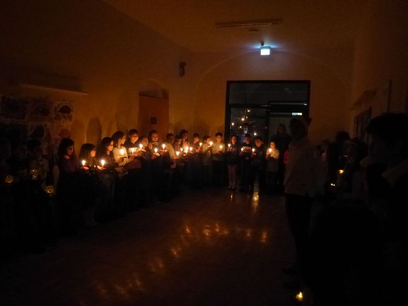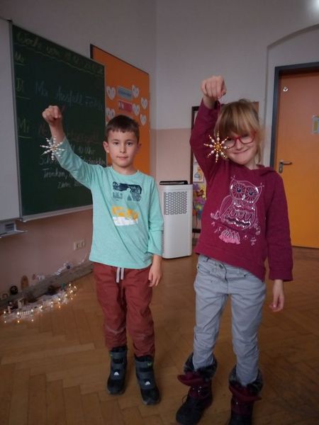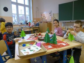 An unserem Weihnachtsprojekttag versammelten wir uns auf dem von Kerzenschein erhellten Schulflur. Jede Klasse hatte ein Weihnachtslied vorbereitet. Anschließend genossen wir die Zeit im geschmückten Klassenzimmer bei einem gemütlichen Weihnachtsfrühstück. Beim Weihnachtsbasteln entstanden hübsche Weihnachtsgeschenke und sogar der Weihnachtsmann kam vorbei.
