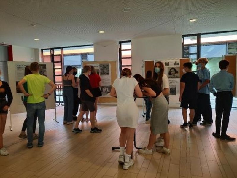 Mit einem jährlichen Aktionstag zu Anne Franks Geburtstag am 12. Juni unterstützt das Anne Frank Zentrum bundesweit Schulen mit Material gegen Antisemitismus und Rassismus. In diesem Jahr lautet das Motto „Blick auf die Geschichte“. Daher haben die Fachschaft Geschichte und Ethik mit dieser Unterstützung eine Plakatausstellung für Schüler und Schülerinnen organisiert. Diese fächerübergreifende Kooperation ermöglicht einmal die Auseinandersetzung mit dem Leben der Anne Frank zur Zeit des Nationalsozialismus für das Fach Geschichte und gibt weiterhin Einblicke in das Thema Vorurteile und Judentum für das Fach Ethik und Religion. Auch im Deutschunterricht sind vielfältige Einsatzmöglichkeiten denkbar. Zusätzlich zur Plakatausstellung kann die „Anne Frank Zeitung“ ausgeliehen werden. In dieser werden historische und moderne Themen miteinander verknüpft. Die Thematik der Vorurteile über Juden wird bis zur aktuellen Genderdiskussion erweitert. Weiterhin wird in der Zeitung auch die Subjektivität von Fotos untersucht etc. Alle Materialien lassen sich in den Fachunterricht integrieren, die Ausstellung kann im Sinne eines Unterrichtsganges bis zum Schuljahresende besucht werden.