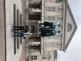 Auf der Rallye durch die Stadt kamen die Schüler an der Anna Amalia Bibliothek vorbei, dem Wohnhaus von Schiller und natürlich auch dem Nationaltheater von Weimar, mit der berühmten Statue vor dem Eingang.