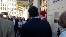 Am Ende der Veranstaltung waren alle Teilnehmer zu einem Abendempfang im Dresdner Stadtmuseum geladen, was sich die Mitglieder der AG Schularchiv nicht zweimal sagen ließen.Als Einstimmung auf den Abend führte Hofnarr Fröhlich augenzwinkernd über den Neumarkt und leitete als Nasenflötenspieler auch die musikalische Umrahmung ein.