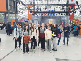 Nachdem wir, der Französisch-LK, beim Prix des lycéens allemands abgestimmt hatten, wollten wir natürlich erfahren, wer nun zum besten französischen Jugendbuch des Jahres gekürt wurde. Unsere Reise führte uns nach einer langwierigen Zugfahrt nach Leipzig. Doch bevor wir den Gewinner erfahren durften, hatten wir die Chance kostenlos durch die Leipziger Buchmesse zu stöbern. Das Angebot war vielfältig und reichte von wissenschaftlichen Texten über internationale Romane bis hin zur Comic Con. Aber auch zahlreiche Essenstände durften nicht fehlen. So hatte man die Möglichkeit sich mit leckeren Crêpes zu stärken und anschließend in das ein oder andere Buch zu schnuppern. Als wir uns mittags wieder zusammengefunden hatten, begann auch schon die Preisverleihung. Eingeleitet wurde diese durch spannende Diskussionen anderer Elftklässler aus ganz Deutschland über die am Preis teilnehmenden Bücher. Sogar der französische Botschafter François Delattre ist angereist, um eine Rede über die Bedeutung der Deutsch Französischen-Freundschaft zu halten. Den Prix des lycéens allemands 2023 gewann schlussendlich Patrick Bard mit seinem Jugendroman „Le secret de Mona“.
