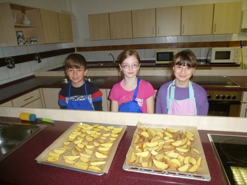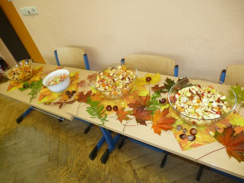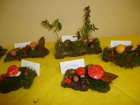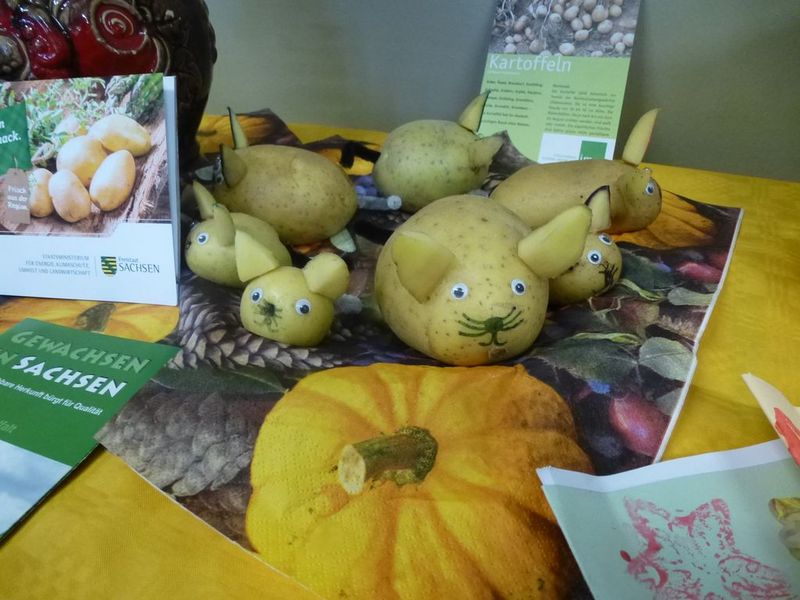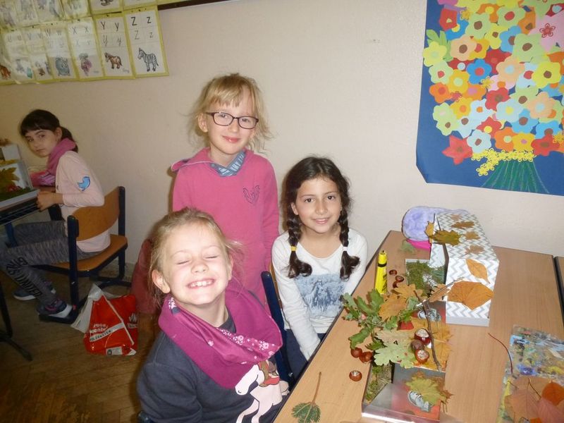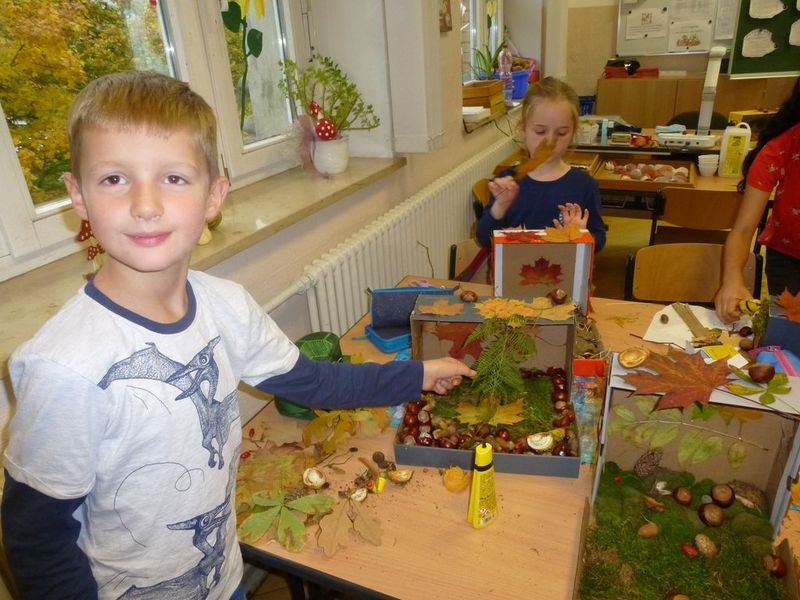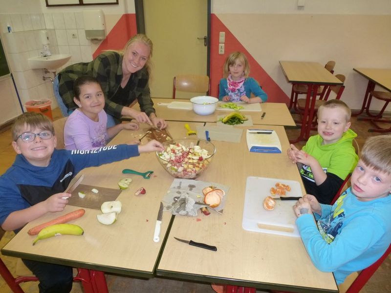 Wer zurzeit durch unser Schulhaus läuft, kommt aus dem Staunen gar nicht mehr heraus. Vor allen Klassenzimmern stehen tolle, gebastelte Schülerarbeiten, die bestaunt und bewundert werden können. Grund dafür ist unser Herbstprojekttag, der am 06. 10. 2022 in unserer Schule stattfand. Jede Klasse beschäftigte sich an diesem Tag mit einem ganz besonderen, herbstlichen Thema. Während die Klasse 1 alles rund um gesunde Ernährung und den Apfel lernte, ein Büchlein zum Thema bastelte und einen leckeren Obstsalat zubereitete, befasste sich die zweite Klasse mit dem Thema Igel. Ein Igelbüchlein entstand und viele schöne Igelwohnungen wurden für ihren getöpferten Igel gebaut. "Rund um die tolle Knolle Kartoffel" hieß es in Klasse 3. Die im Schulgarten selbst angebauten und geernteten Kartoffeln wurden zu leckeren Kartoffelspalten mit Quark zubereitet. Noch dazu entstanden niedliche Kartoffelmäuse und schöne Kartoffelheftchen. Unsere Großen, die Klasse 4, lernten vieles zum Thema Wald. Hübsche Bilderrahmen aus Naturmaterial wurden gebaut und die selbst getöpferten und herbstlich verzierten Keramikpilze sehen spitze aus. Und auch unsere ukrainische Klasse beschäftigte sich an diesem Tag mit dem Herbst. Ein tolles, großes Plakat entstand und leckere Köstlichkeiten aus der Ukraine wurden verkostet.