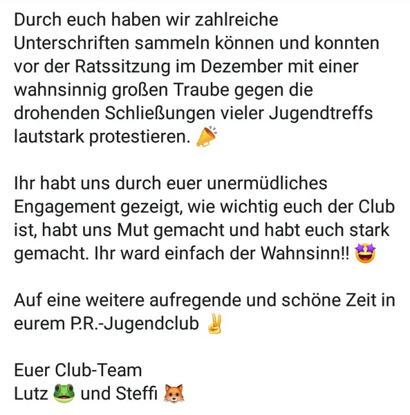 Der P.R.-Club darf bleiben :)