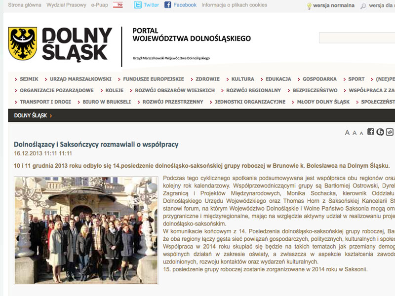 W komunikacie końcowym z 14. Posiedzenia dolnośląsko-saksońskiej grupy roboczej, Bartłomiej Ostrowski podkreślił, że oba regiony łączy gęsta sieć powiązań gospodarczych, politycznych, kulturalnych i społecznych.