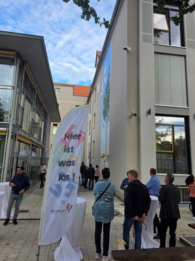 Nach der feierlichen Übergabe, die von der Musikschule mitgestaltet wurde, öffnete unsere Schule ab 17 Uhr ihre Türen für die gesamte Öffentlichkeit. Zahlreiche Besucherinnen und Besucher nutzten die Gelegenheit, bei geführten Rundgängen und Präsentationen einen Eindruck davon zu gewinnen, wie sich unsere Schule weiterentwickelt. Die einzelnen Fachbereiche stellten sich mit großem Engagement vor, kreative Mitmachaktionen luden zum Ausprobieren ein, und beim Kuchenbasar unserer Schülerinnen und Schüler und des Grillstandes des Schulcaterings war auch für das leibliche Wohl bestens gesorgt.