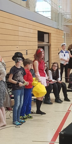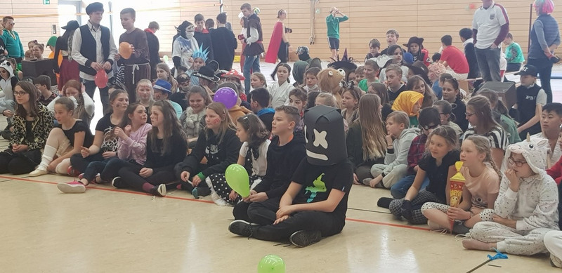 Hülße-Gymnasium, feiern jedes Jahr eine Faschingsfeier, die von den 9. Klassen für die 5. und 6. Klassen organisiert wird. So auch in diesem Jahr am 05.03. 2019.
