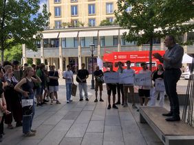 Treff war heute morgen um 10 Uhr vor dem Kulturpalast, wo die verschiedenen Geschichtsorganisationen ihre Beiträge für den 17. Juni vorgestellt haben.