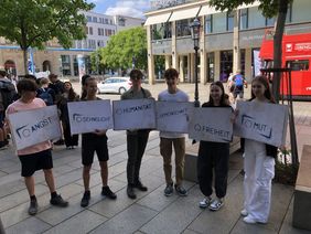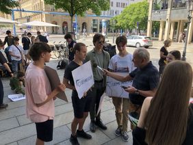 Einige Schülerinnen und Schüler aus der Klasse 10c nehmen an der Veranstaltung teil und haben heute am 12. Juni, gemeinsam mit anderen Schülerinnen und Schülern vom Kreuzgymnasium, im Rahmen der Presseveranstaltung durch eine coole Sprüh- und Plakataktion für diesen Tag geworben.