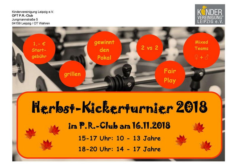 Herbst-Kickerturnier und Bericht vom Ferienprogramm im P.R.-Club