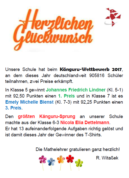 Herzlichen Glückwunsch - Känguru der Mathematik (Teil 2)