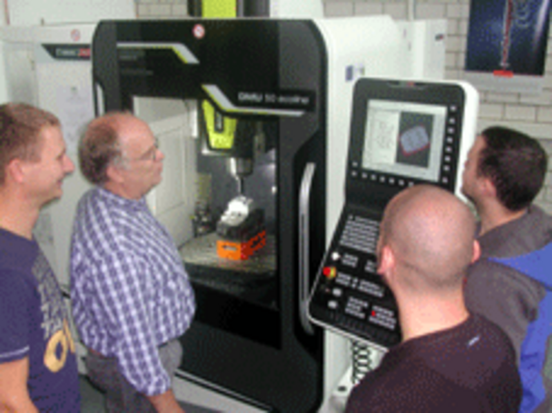 Völlig überrascht war Herr Jacob, Lehrer für maschinelle Zerspanungstechnik am BSZ Radeberg, als er bereits während der Sommerferien Vorbereitungen für das neue Schuljahr treffen wollte und an diesem Tage die neue Fräsmaschine beim Hereinfahren in die Werkstatthalle erblickte. Das große Engagement der Mitarbeiter des Schul- und Bauamtes am LRA Bautzen hatte die Voraussetzungen geschaffen, dass die Maschinenlieferung schon in der letzten Woche der Sommerferien erfolgten konnte. Diese hervorragende Organisation und das durchdachte Handeln der Haustechniker des BSZ führten zu einem reibungslosen Aufstellen der Maschine. Somit konnte die Inbetriebnahme und Übergabe unverzüglich erfolgen. Eine Beeinträchtigung des Unterrichtsbetriebes wurde vermieden. Mit der Schulung der entsprechenden Lehrkräfte ist auch der zeitnahe Einsatz dieser hochmodernen Fräsmaschine im Labor- und Versuchsunterricht gewährleistet. Der Erwerb der DMU50 ecoline von DMG-Mori Seiki durch den Landkreis Bautzen, gefördert durch den Europäischen Fonds für regionale Entwicklung (EFRE), schafft am BSZ die Basis, Zerspanungsmechaniker nicht nur theoretisch in der Programmierung und Handhabung von 3+2-Achs-Frästechnik zu unterrichten. Im speziellen Labor- und Versuchsunterricht können jetzt auch komplexe Fertigungs- und Messvorgänge durchgeführt, vom Lehrling erstellte CNC-Programme an der Maschine praktisch umgesetzt sowie entsprechende Arbeitsabläufe und Fertigungsparameter im realen Prozess optimiert werden. Am Beruflichen Schulzentrum Radeberg werden künftige Zerspanungsmechaniker für Wirtschaftsunternehmen in Ostsachsen ausgebildet. Das große Plus für die Wirtschaft ist, dass ihre künftigen Zerspanungsmechaniker noch solider ausgebildet und in die neueste Maschinentechnik eingeführte sind. Der Vorteil für die Auszubildenden ist, dass sie im Unterricht optimal in die Lage versetzt werden, den neuen PAL-Prüfungsanforderungen im Bereich der CNC-Mehrachsbearbeitung gerecht zu werden. Als Synergieeffekt wird diese hochmoderne Maschinentechnik auch im Laborunter-richt der Fachschule für Technik zum Einsatz kommen. Damit verbessert sich auch die Ausbildungsqualität in dieser Schulart. Kurz gesagt, der Erwerb der neuen Maschine wird sich positiv auf die Entwick-lung der Wirtschaft für Ostsachsen auswirken. Wir, die Lehrer des BSZ Radeberg möchten uns und das auch im Namen unserer Schüler, bei allen Beteiligten, die diese Neuanschaffung unterstützt und realisiert haben, ganz herzlich bedanken.