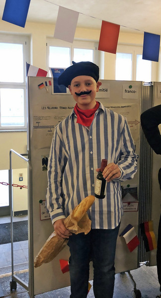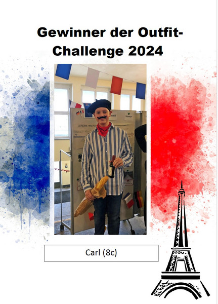 Die Outfit-Challenge wurde unter dem Motto "bleu-blanc-rouge" von vielen Schülerinnen und Schülern umgesetzt, gewonnen hat Carl aus der Klasse 8c.
