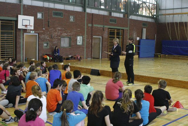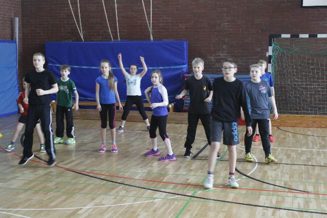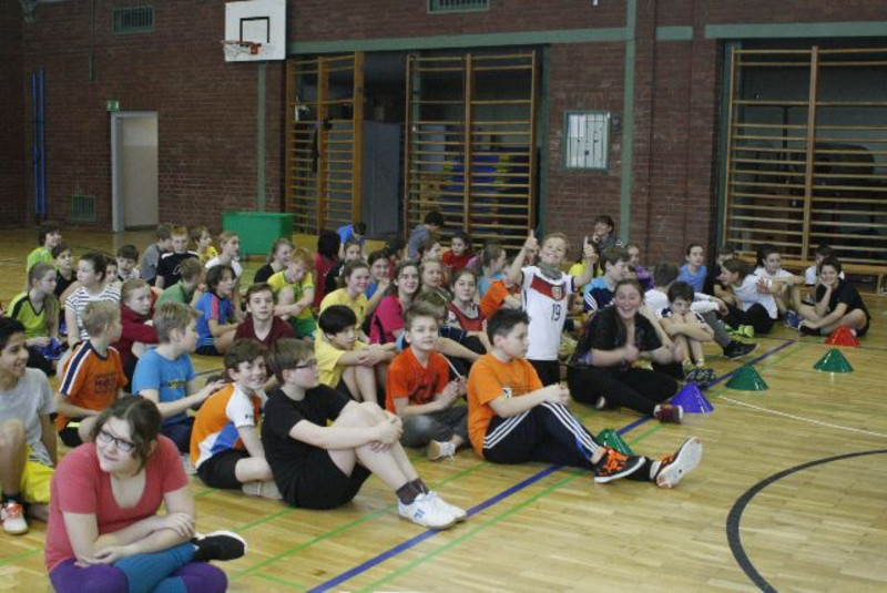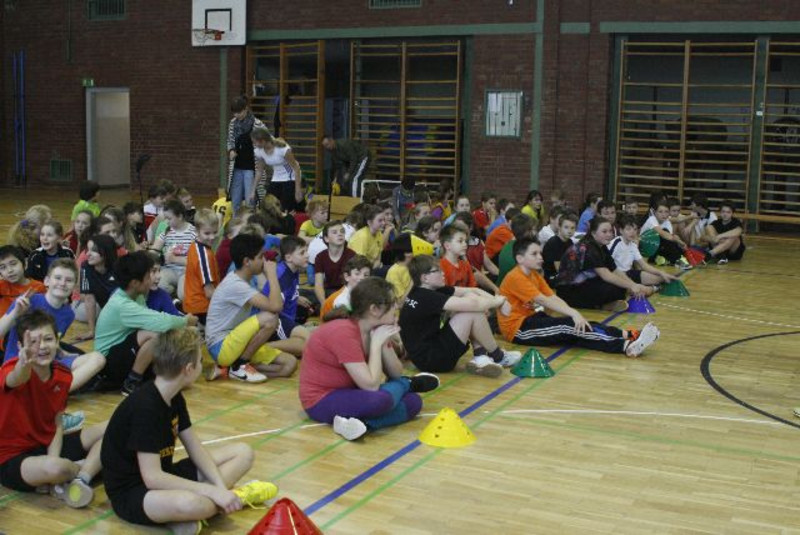 Alle Fünftklässler maßen sich im Zweifelderball und zeigen ebenso grandiose Leistungen. Hier siegte die Klasse 5/5 knapp.