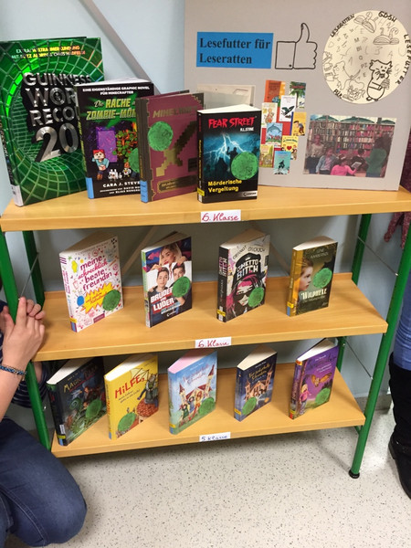 Dieses Bibliotheksregal ist ein ganz besonderes, denn der Inhalt füllte sich durch den Einkauf von Lesern des GDSW. Die Deutschlehrer der Schule waren sofort begeistert, als Frau Weiß, die Leiterin der Bibliothek Gorbitz, mit dieser tollen, neuen Idee an uns herantrat: Junge Leser sollten Lesestoffe aussuchen, einkaufen  und am Ende ein eigenes Regal in der Bibliothek gestalten. Und nicht nur die Lehrer waren begeistert, am liebsten hätten alle Schüler an diesem Projekt teilgenommen. Jetzt hoffen alle Leser, Einkäufer, Begleiter des Projekts, dass die ausgewählten Bücher viele Leser finden, das Regal also möglichst oft gaaannnzzz leeeerrrr ist!!! Eure Deutschlehrer