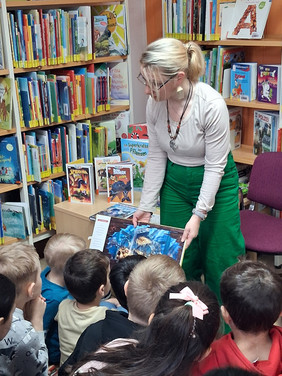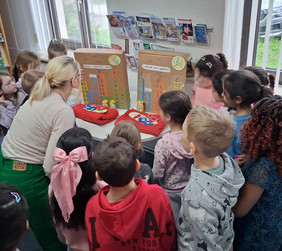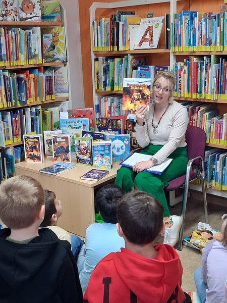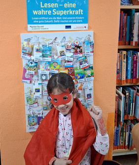 Zum Welttag des Buches besuchten die Kinder der 1. und 2. Klasse die Auer Stadtbibliothek. Hier hatte sich Frau Kleinwächter diesmal etwas Tolles rund um das Thema "Superhelden und Superkräfte" überlegt. Viele schöne Bücher wurden vorgestellt und dabei ging es nicht nur um typische Superhelden wie zum Beispiel Spiderman, sondern auch um Helden aus dem Tierreich, der Pflanzenwelt oder des Alltags. Ihre ganz eigene Superkraft, nämlich das Lesen, wurde von den Kindern natürlich stilecht im Heldenkostüm demonstriert und klappte auf Anhieb. Anschließend durfte nach Herzenslust in den vielen, interessanten Büchern der Bibliothek gestöbert werden.