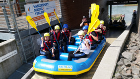 Mitte Mai fand im Kanupark Markkleeberg die 2. Staffelrunde des MITGAS Schüler-Rafting statt, bei dem sich bei bestem Sonnenschein Schüler aus 12 Schulen Leipzigs im Wildwasser gegen die Uhr und gegeneinander gemessen haben. In zwei Runden gingen für das LOPS Finn Dingler und Moritz Leithold (9/2), Hannah Fleischer, Aileen Sievert und Ludwig Serbser (8/3), Konrad Gündel 7/4) sowie Yolanda Lüdike (8/1) an den Start. In der ersten Runde sind alle Boote einzeln in den Kanal gestartet und konnten in zwei Läufen ohne Gegnereinfluss auf die Jagd nach der Bestzeit gehen. Das LOPS mussten sich nur zwei Booten geschlagen geben und erreichten Platz drei der Zeitläufe. In Runde Zwei wurde die ganze Sache interessanter. Es starteten jeweils zwei bis drei Boote gleichzeitig in den Kanal, wobei nur die Sieger in die nächste Runde einzogen. Hier haben unsere Jungs und Mädels gezeigt, was in ihnen steckt. Sie gewannen alle hart umkämpften Starts und haben ihre frühe Führung nie abgegeben. Im Finale trafen unsere Sportler auf das Sportgymnasium, welches zuvor die Zeitläufe gewonnen hatte. Die Sportgymnasiasten konnten dem Lops auf der Startgeraden zunächst mehr entgegensetzen als die Teams zuvor, weshalb es spannend wurde. Kurz bevor es ins Wildwasser ging hatte das LOPS jedoch erneut die Nase vorn und konnte sich mit einem fehlerfreien Lauf den Sieg in der KO-Runde sichern. Mit diesem Sieg haben sich die Sportler des LOPS für die große Finalrunde des Schüler-Raftings am 30.5. qualifiziert, in dem die jeweils zwei besten Mannschaften der 6 Staffelrunden gegeneinander antreten. Wir wünschen unseren Jungs und Mädels viel Erfolg und vor allem viel Spaß beim Finale. Update 30.05.: Unsere Kanuten belegten am Ende in der Finalrunde einen hervorragenden 6. Platz - angetreten waren ursprünglich 72 Teams!