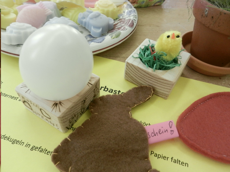 - Dienstag, 4.4.2017 (Seifengießen, Reagenzglasständer für Frühlingsblumen, kleine bunte Boxen aus Holz u.a.)