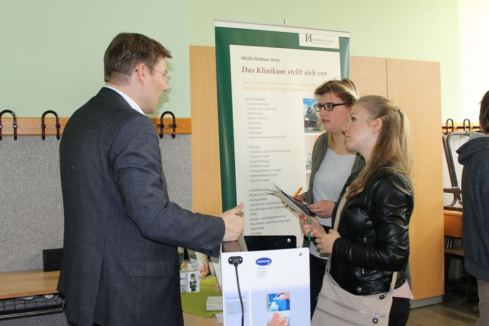 26 Firmen der Region, darunter schon richtige Stammgäste aber auch ganz neue. Gleich wie allen gilt unser Dank: der Gerodur MPM Kunststoffverarbeitung GmbH&Co.KG Neustadt, der Gebr. Biermann Haustechnik GmbH Dohna, der Theegarten Pactec GmbH&Co.KG Dresden, dem VEM Sachsenwerk GmbH Dresden, der Rechtsanwaltskammer Sachsen, dem Landratsamt Pirna Ausbildungsberatung „Grüne Berufe“, der Polizei Sachsen, der Dürrröhrsdorfer Fleisch- und Wurstwaren GmbH, den OBI- Baumärkten Pirna/Dresden, der expert Pirna e.K. Pirna, dem Auto Forum Heidenau, der DGH Heidenau GmbH & Co.KG Dohna, dem IMPRO e.V. Zentrum Präzisionsmechanik, A. Lange und Söhne Glashütte, der EUROVIA GmbH NL Dresden/Radeberg, dem Bauzentrum Willkommen Pirna, Stolpen, dem HELIOS Klinikum Pirna, dem Deutschen Roten Kreuz Bildungswerk Sachsen gemeinnützige GmbH Dresden, der Cultus gGmbH der Landeshauptstadt Dresden, dem BSZ für Technik und Wirtschaft Pirna, der Lebenshilfe e.V. Pirna-Sebnitz-Freital e. V., der Akademie für berufliche Bildung gGmbH Dresden und der Agentur für Arbeit Pirna.