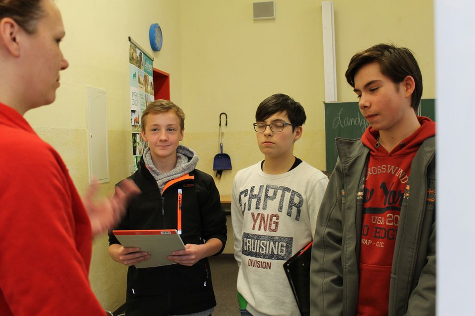 Das war im wahrsten Sinne des Wortes ein „Gewimmel“ an unserer Schule, schließlich hat der alte Goethe immer einen Blick auf seine Schule. Schon vor 14:00 Uhr rollten die Firmen mit ihren Gerätschaften an. Schließlich galt es alles bis zur Eröffnung in den Klassenzimmern der 1. Etage aufzubauen. Pünktlich 15:00 Uhr konnte ich die Schüler unserer siebenten bis zehnten Klassen begrüßen und unsere „Gastschüler“ aus der Pestalozzioberschule, unsere Lehrer und ganz besonders herzlich die Vertreter von