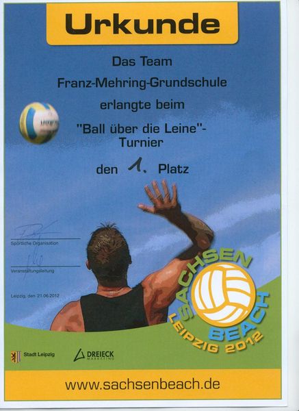 Am 21. Juni fand das Turnier "Ball über die Leine"der Grundschulen im Rahmen der Veranstaltungen des Sachsenbeach statt. Unsere Schule erzielte den 1.Platz.