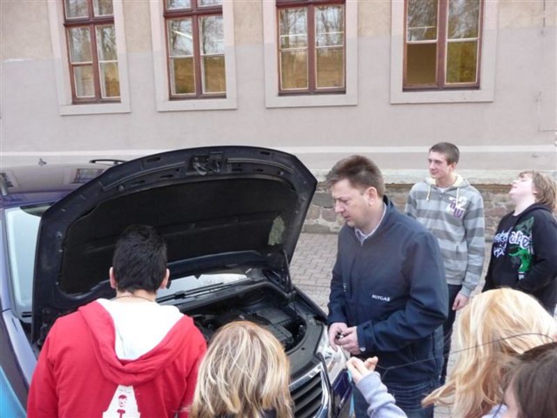 Im Rahmen des Projektes "Schüler lesen Zeitung" war am 19.03.2010 einer der Sponsoren, die MITGAS GmbH, an der Schule zu Gast. Den Schülern der drei achten Klassen wurde zuerst im Klassenzimmer kurz Wissenswertes rund ums Erdgas erklärt, danach konnten sie sich auf dem Pausenhof ein erdgasbetriebenes Auto anschauen. [Bilder]