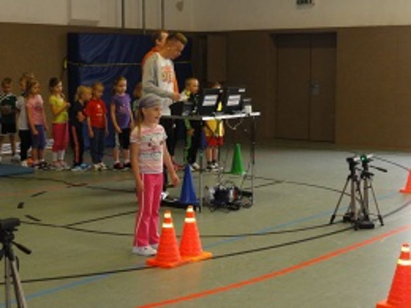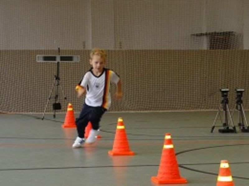Der diesjährige Schulsporttag stand unter dem Motto „Kindersprint„. Auf einem computergestützten Laufparcours wurden durch ein Lichtschrankensystem genaue Messungen von Laufdaten erfasst. Die Kinder, eingeteilt in Gruppen, mussten zuerst Reaktion beweisen. Eine Ampel zeigte die Laufrichtung an. Schnellstmöglich sprintete der Läufer dann eine acht Meter lange Strecke bis zur Wendemarke und anschließend im Slalom zurück. Im Ziel angekommen, druckte der Computer die entsprechenden Laufzeiten aus. In mehreren Läufen konnten zahlreiche Kinder ihre Leistung verbessern. Kinder, die sich qualifiziert haben, starten am 20.09.2014 zum außerschulischen Endspurt in Radebeul. Wir drücken allen Beteiligten die Daumen!