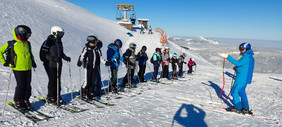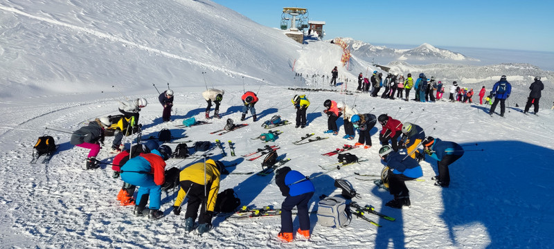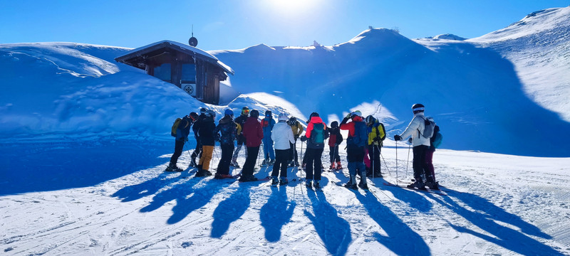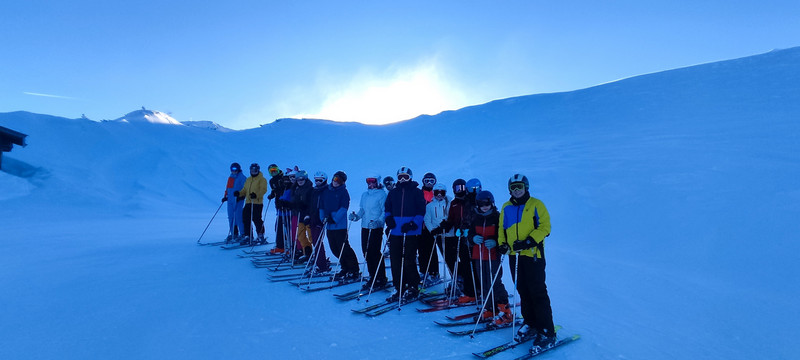 Der zweite Tag begann mit strahlendem Sonnenschein! Früh um 07:00 Uhr hieß es frühstücken und um 09:00 Start in allen Disziplinen: Langlauf, Alpin und Snowboard. Unter der Anleitung erfahrener Skilehrer erlernten die Anfänger die Grundlagen einer der drei gewählten Disziplinen auf deutscher Seite in Sachrang, während sich die fortgeschrittenen Skifahrer auf anspruchsvollen Abfahrten im österreichischen Kössen übten und weiterentwickelten. Die atemberaubende Aussicht und das gute Wetter trugen zu einem unvergesslichen Tag auf der Piste bei!