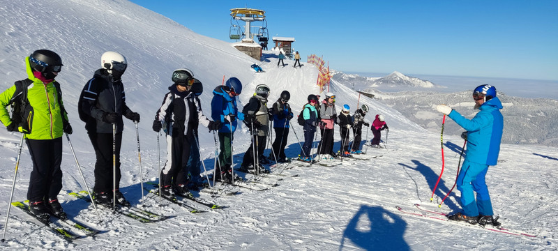 Der vierte Tag brachte erneut Skivergnügen. Wir verbesserten unsere Techniken und wagten uns auf anspruchsvollere Pisten. Nach einem intensiven Tag auf der Piste kehrten wir am Abend müde, aber glücklich, in unsere Unterkunft zurück. Am Abend stand eine aufregende Disco auf dem Programm. Die Schülerinnen und Schüler sowie unsere Lehrerinnen und Lehrer tauschten die Skischuhe gegen Tanzschuhe ein und feierten ausgelassen.