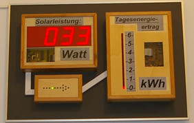Die Solaranlage unserer Schule ist nach ihrem dreijährigen Dornröschenschlaf wieder am Netz. Momentanleistung und Tagesenergieertrag kann man an der Anzeige Eingang Südseite ablesen.