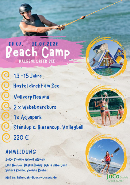Ihr habt in der ersten Ferienwoche im Sommer noch nicht vor? Dann komm mit – Wakeboard fahren, Nutzung des Aquaparks, Volleyball und vieles mehr wartet auf dich. Wir freuen uns auf jede Teilnahme. Bei Fragen stehe ich gern zur Verfügung. (Linn Neuber neuber@juco-coswig.de oder 0160 99019878)
