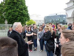 Die Auseinandersetzung mit dem Warschauer Aufstand und dem Kampf mit dem Aggressor fand ihre Fortsetzung in den Workshops mit Dr. Tadeusz Krząstek, Historiker, Dokumentarist, Oberst der polnischen Luftwaffe und Lehrbeauftragter am Institut für Osteuropastudien der Universität Warschau. Dr. Krząstek ist Autor mehrerer Bücher und über 300 wissenschaftlicher Artikel über die Traditionen der polnischen Streitkräfte. Daher erfuhren wir im Zuge der Workshops eine Vielzahl an interessanten Details über militärische Traditionen, die zum Beispiel mit dem Wachwechsel am Grab des Unbekannten Soldaten auf dem Plac Marsz. Józefa Piłsudskiego (Marshall-Józef-Piłsudski-Platz) zusammenhängen.